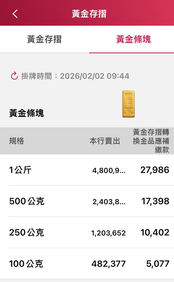 剛看一下台銀的金條,又盪到50萬以下了!