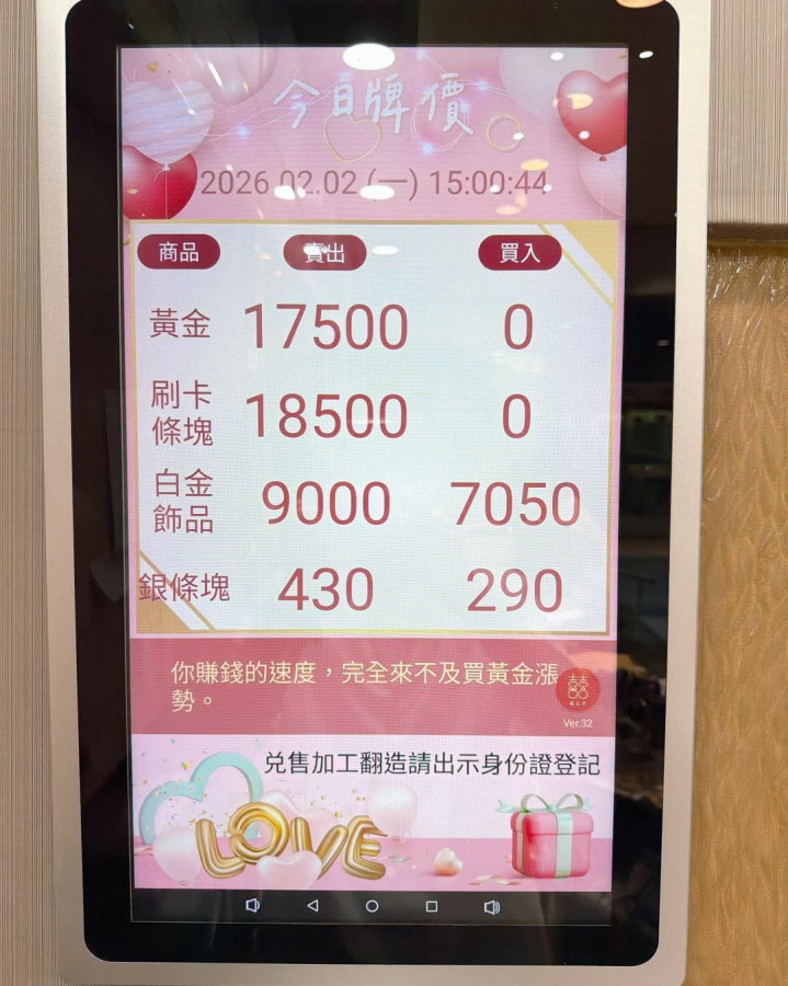 一張只賣不買,一張只買不賣,大概反轉前跟反轉後。現在價格波動非常快,銀樓也難做