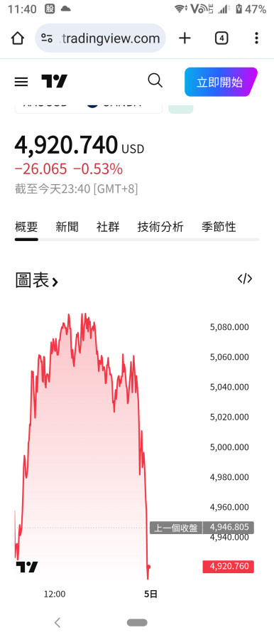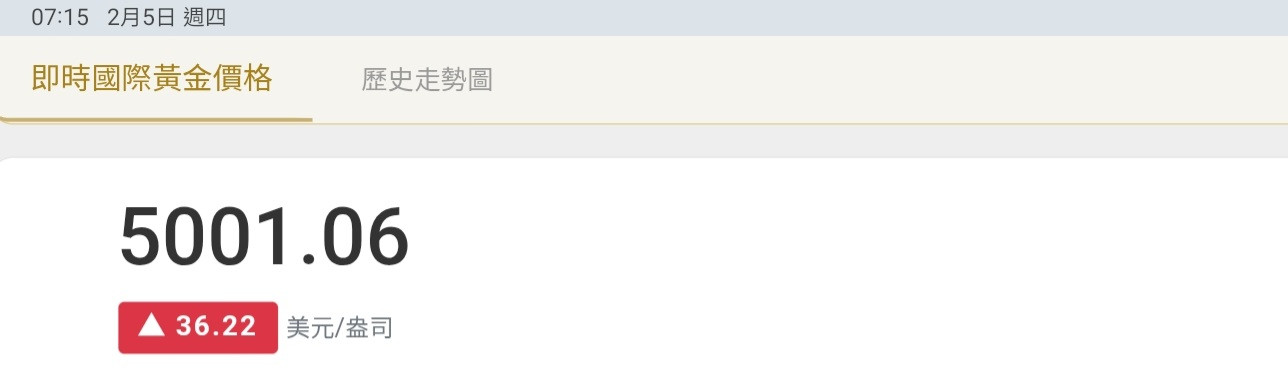 02/05開盤又衝過5000最高達5023美元