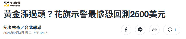黃金漲過頭?花旗示警最慘恐回測2500美元