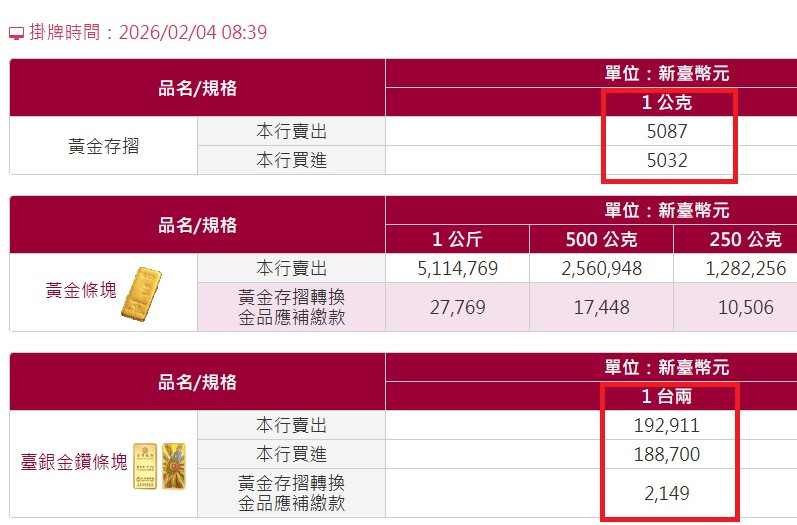 黃金存摺跟實金參考的價格是一樣的,只是提領實金要另外加補繳款。