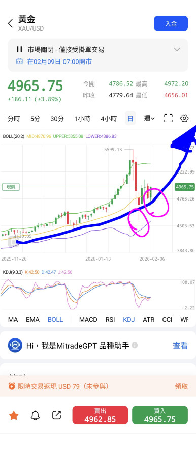 感覺明天開盤 黃金肯定會噴上5100!!