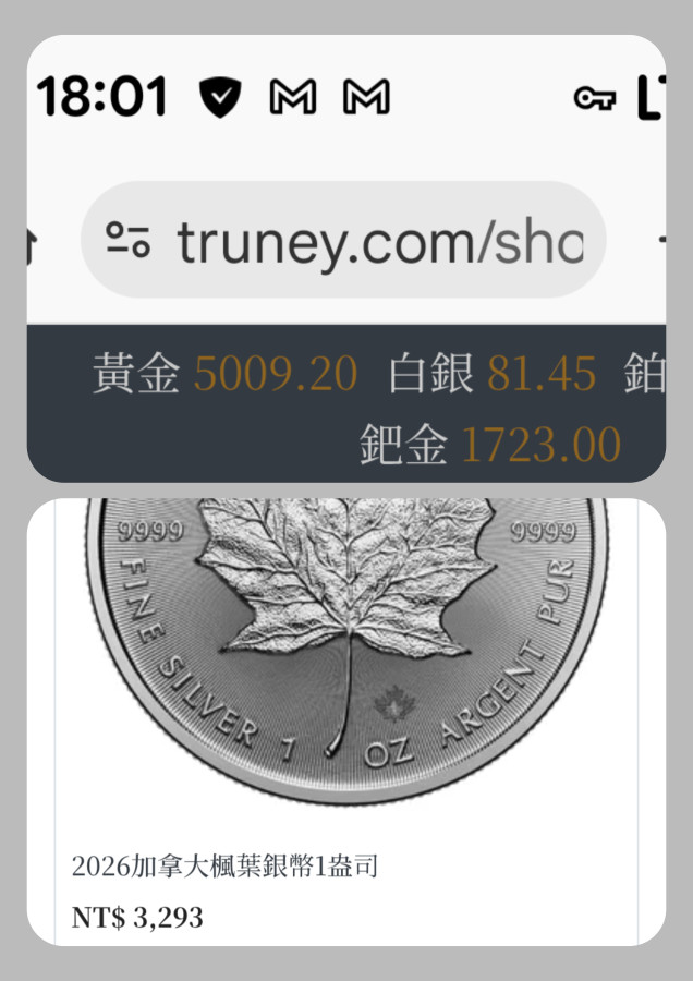 回覆 暗影:在Truney販售的加拿大楓葉銀幣,之前...