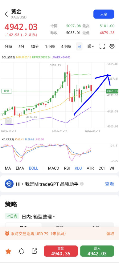 回覆 雄大:還好沒有跌破上升曲線💪📈明天繼續加碼黃金...