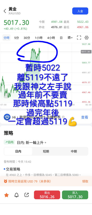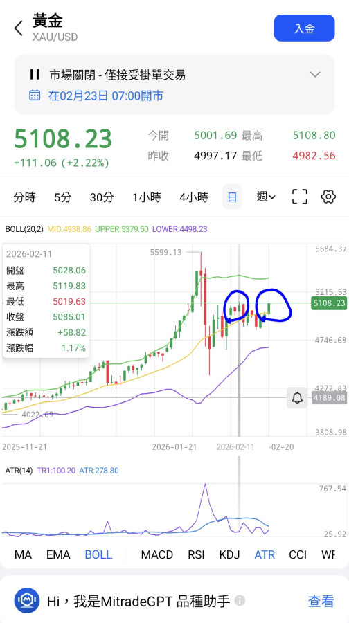 之前2月11日衝得很高5119美元計價,神之左手說賣黃金,我跟他說不要賣,賣會後悔.