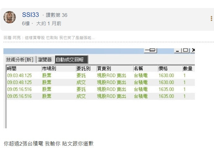 回覆 SSS33:所以你買台積電了沒你的單 貼來看看不要出...