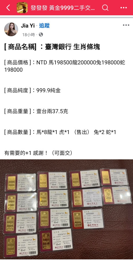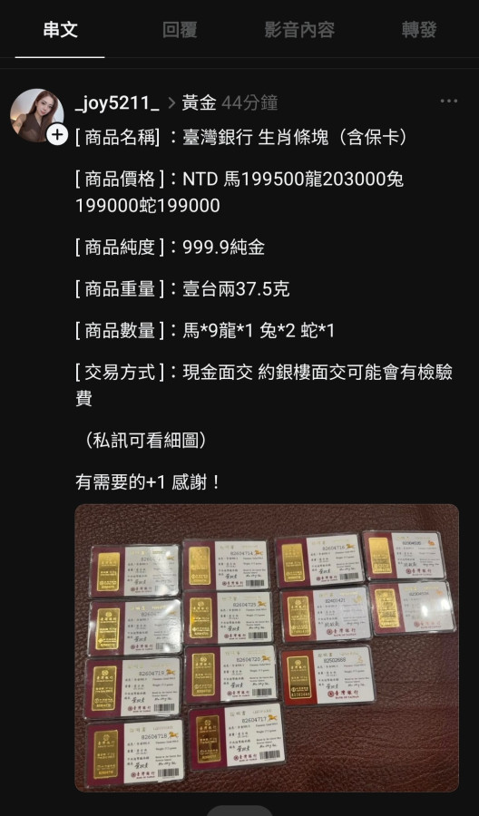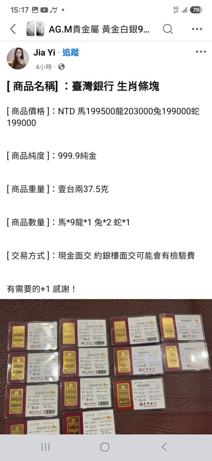回覆 雄大:雖然黃金存摺我可以足夠去換一片生肖但實在...