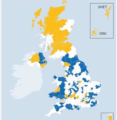 不知道有沒有區域性的圖示。如果投票結果和地緣有相關性的話。也許可以提前推敲出, in or out