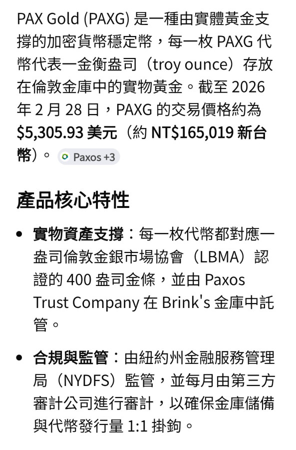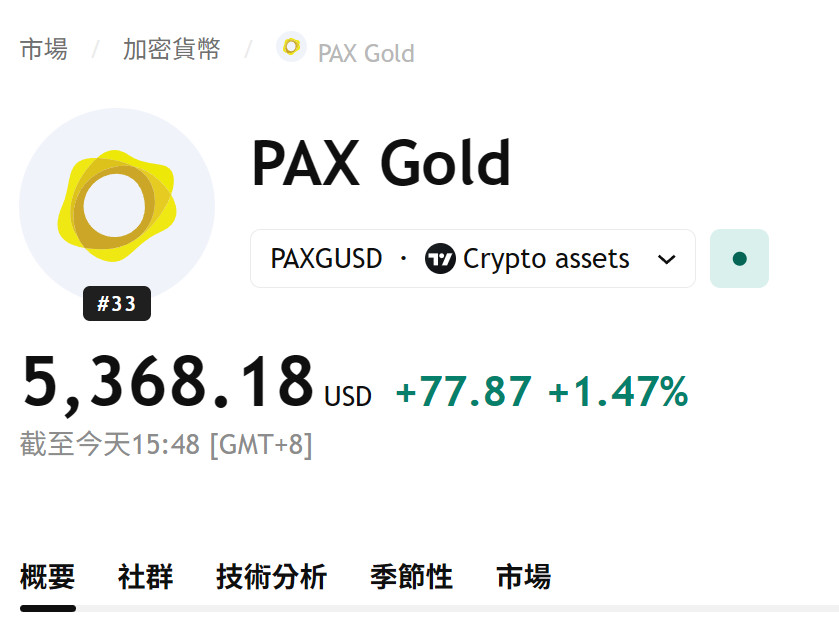 回覆 暗影:不是,PAXG是代幣化黃金,相當於黃金穩...