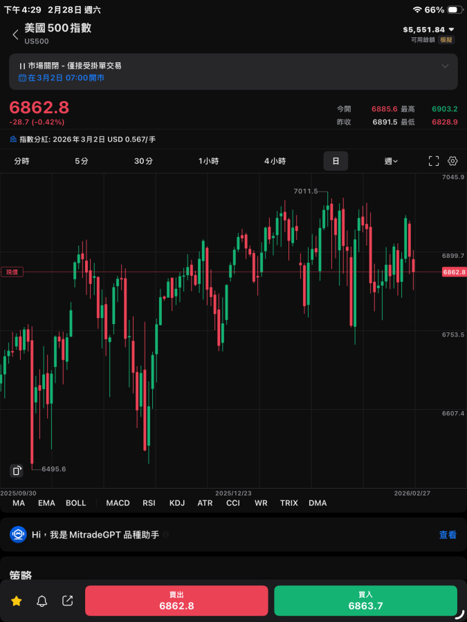 根據經驗,美股不太怕戰爭,說真的飛彈打不到美國本土,他們根本沒在擔心這個,甚至有些軍工股還會狂漲。這幾個禮拜美股走橫盤,各股走勢分裂,也許下禮拜開盤各股會手牽手一起讓標普漲過7000也說不定。