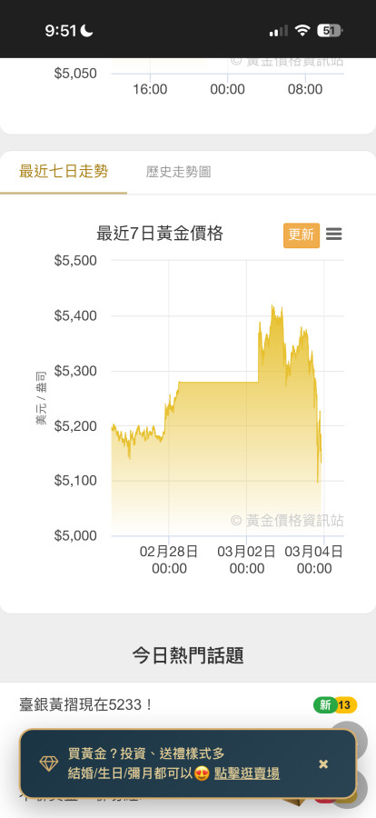 銀樓開價金條金塊大約20000左右