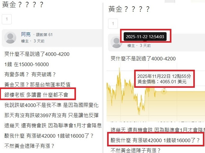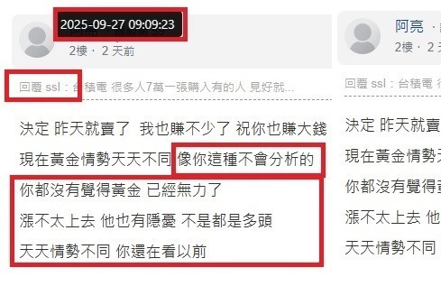 回覆 阿亮:我不是明燈嗎?那些說黃金不會跌 不會賣的...