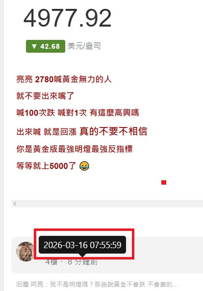 回覆 金金快漲大:都喊幾天去了今天才跌破5000都不知道你...
