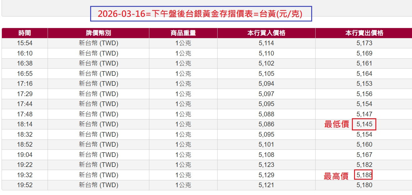 今早台銀報價=本行賣出5164元(NT$)=比昨日更低更划算