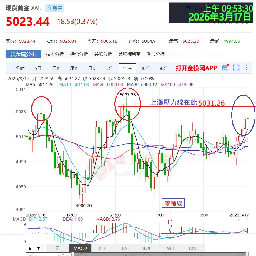 若一衝過5037元-則就變為攻防互換對調(壓力變支撐)=5037就變成支撐點了