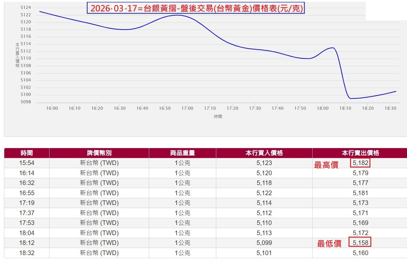 2026-03-17~台銀黃金存摺報價表