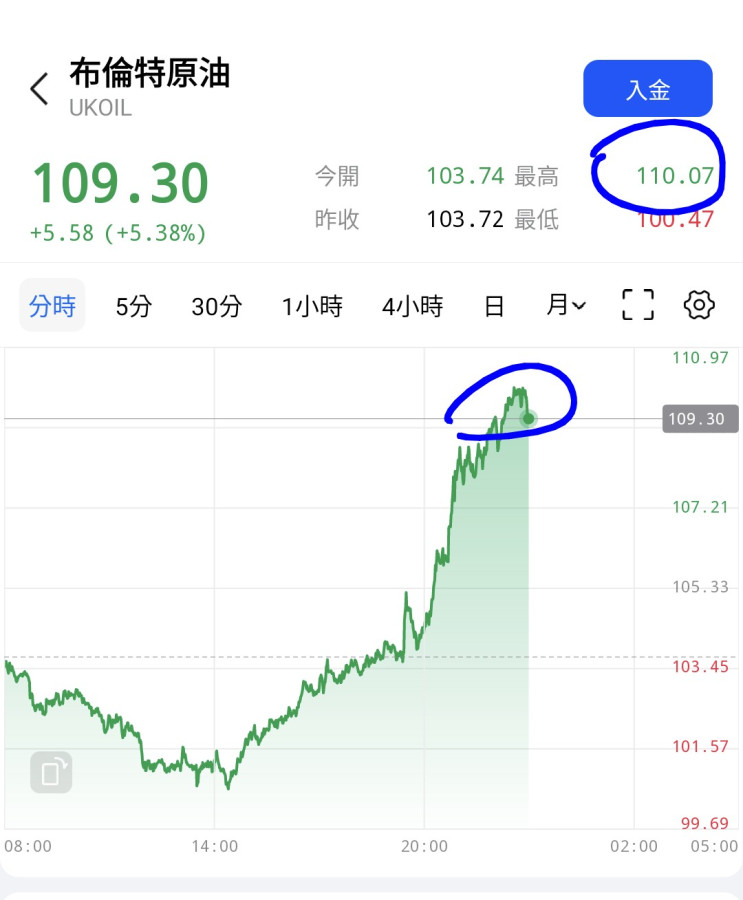 回覆 雄大:希望石油頂部到了110不要再鬧了黃金希望...