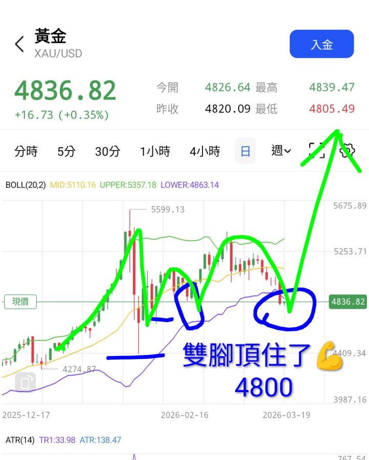 回覆 一諾千金:我認為下探4800美元應頂住。才能保持後...