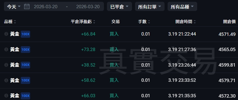昨晚我有5單*0.01手的黃金多單, 平均價位是4577, 到4640止盈