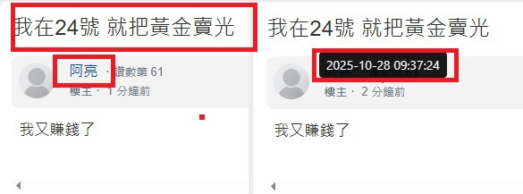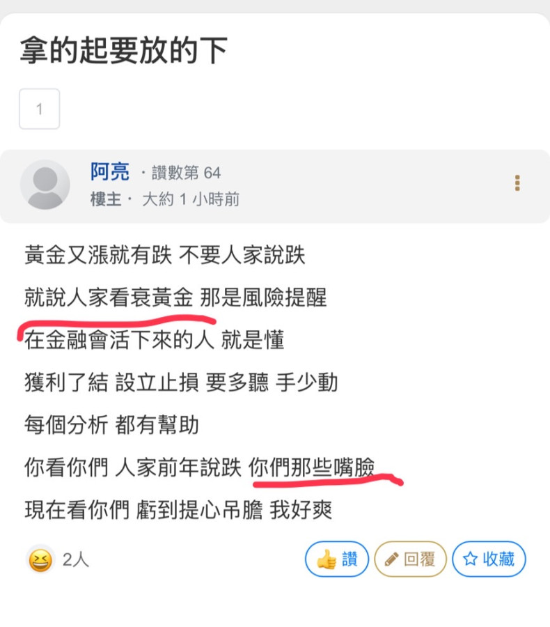 回覆 阿亮:黃金又漲就有跌 不要人家說跌就說人家看衰...