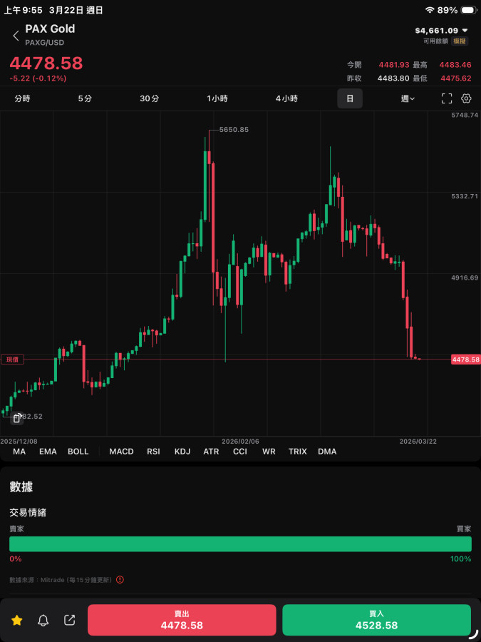 結合目前金價已跌破4500並收在4490來看,技術面偏空,加上情緒面還不夠悲觀,代表籌碼還沒洗乾淨,價格仍有機會繼續往下測試。