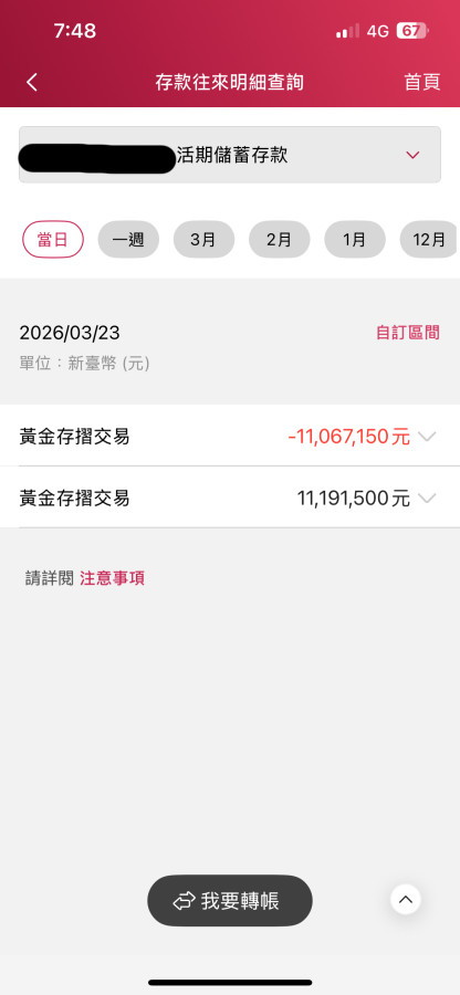 下午看到黃金又開啟狂漲模式,於是手一滑、下了單。