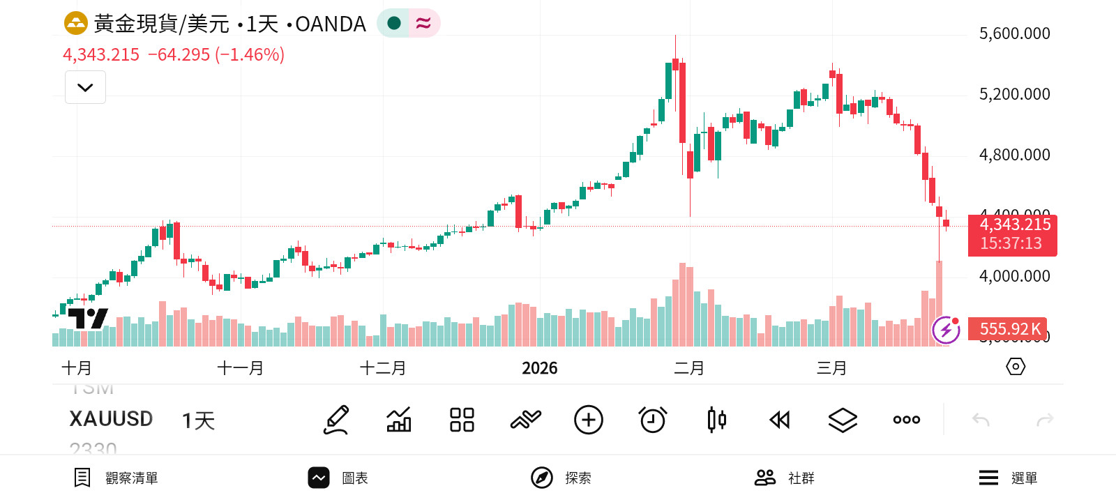 黃金是避險工具大家熟知,個人覺得現在只是尚未到時機點避險情緒尚未明顯,現在跌只因持金者為求變現求生存,沒什麼比黃金變現更快的工具,美伊戰爭若再持續下去,黃金一定會漲回來!石油現在漲到每桶150-160,接下來沒停戰,通膨才可怕!還有日本也會大量拋美債回本,日本是美英的債權國,戰再打下去,日本會受不了的,各國皆靠石油生存,石油是工業血液,缺血缺氧活不下去!美國欠日本很多錢,一旦日本為求生存大量拋售美債英債,美英會就挫塞!支持閒錢存金,勿借錢買金投金,自然漲跌不驚!女神萬歲!👏