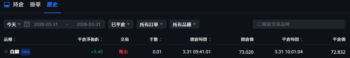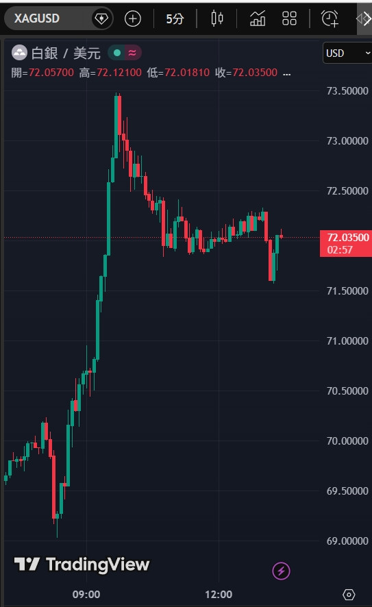 早上黃金白銀彷彿打了針吃了藥一般猛衝, 黃金衝了2%白銀衝了4%, 完全就是不敢追高, 只空了一把73, 看來只能再期待下一波了!