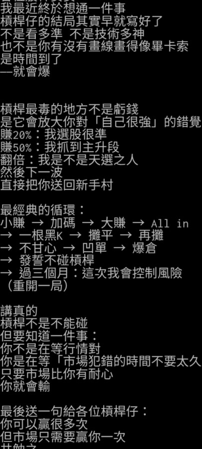 回覆 神之左手:賺市場快錢,必須用槓桿,否則賺不多。成功...