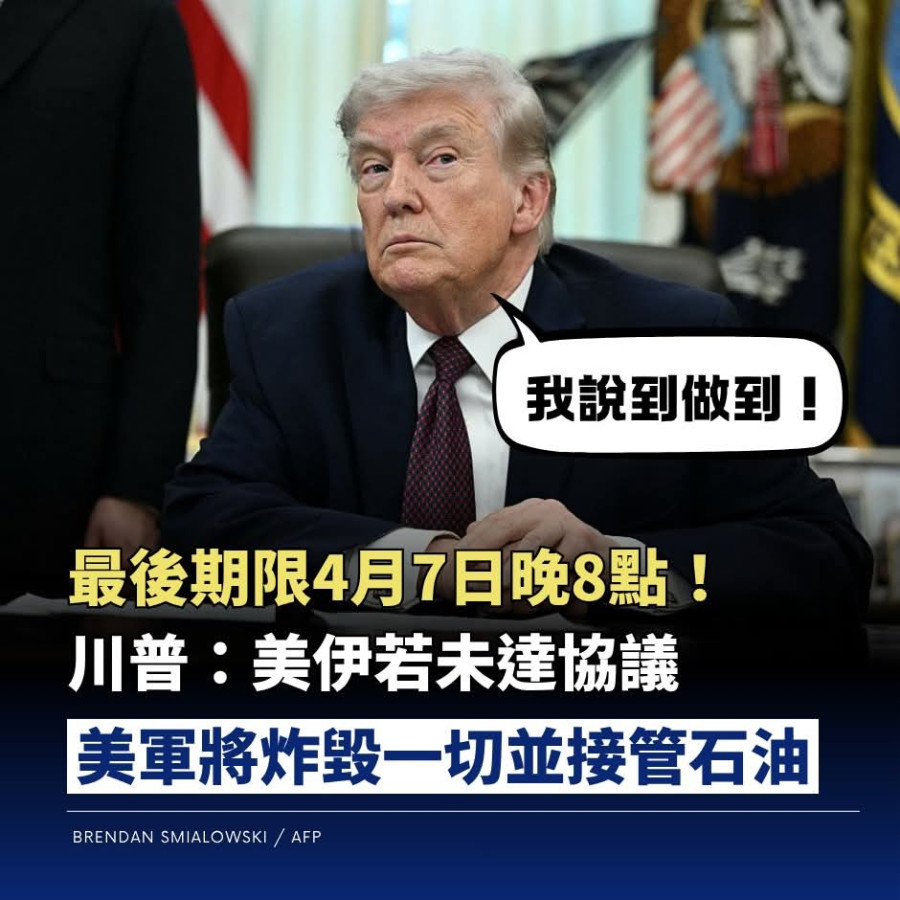 川普說他說到做到,這句真的好笑,本來說兩天然後再延一天,如果伊朗繼續打,川普大概還會再延,美國打不下去,以色列也差不多,不過戰爭的效應才剛開始,就算停戰也要大半年才能回歸正常,股市會先大漲然後慢慢跌。