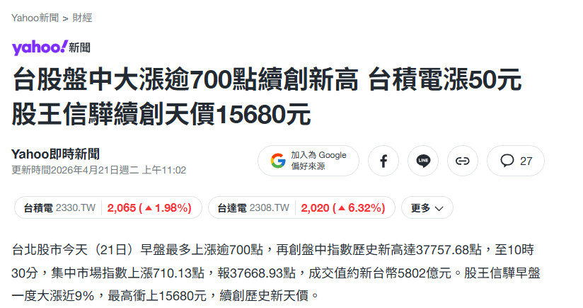 今天台股大漲 😱
