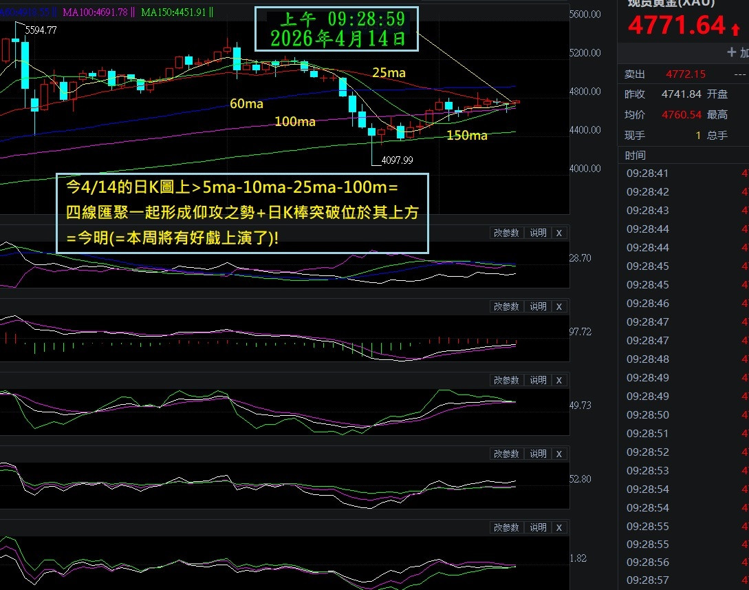 今4/14的日K圖上>5ma-10ma-25ma-100m=