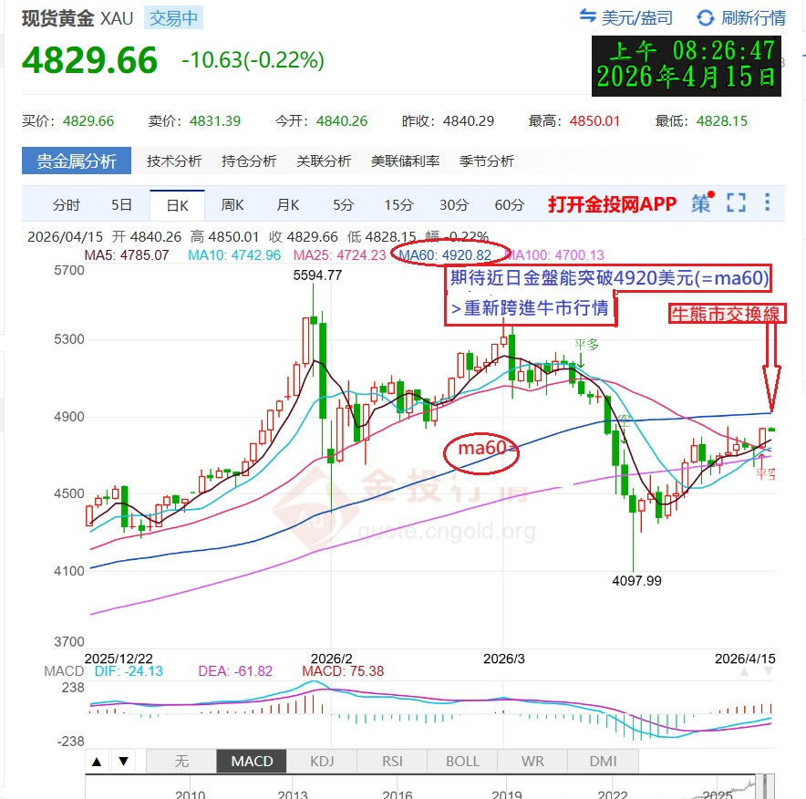 四線匯聚一起形成仰攻之勢+日K棒突破位於其上方