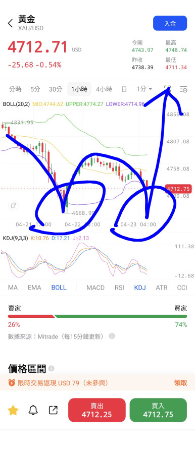 黃金本週又回到流動性差的老路子, 對於日內交易者來說挺無聊的, 亞盤少了確定性, 歐盤少了延續性, 美盤少了絕對的輾壓式的跑法, 這時候少交易不交易靜靜的等趨勢才是正確的!