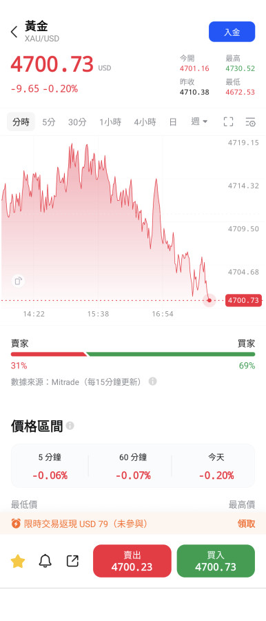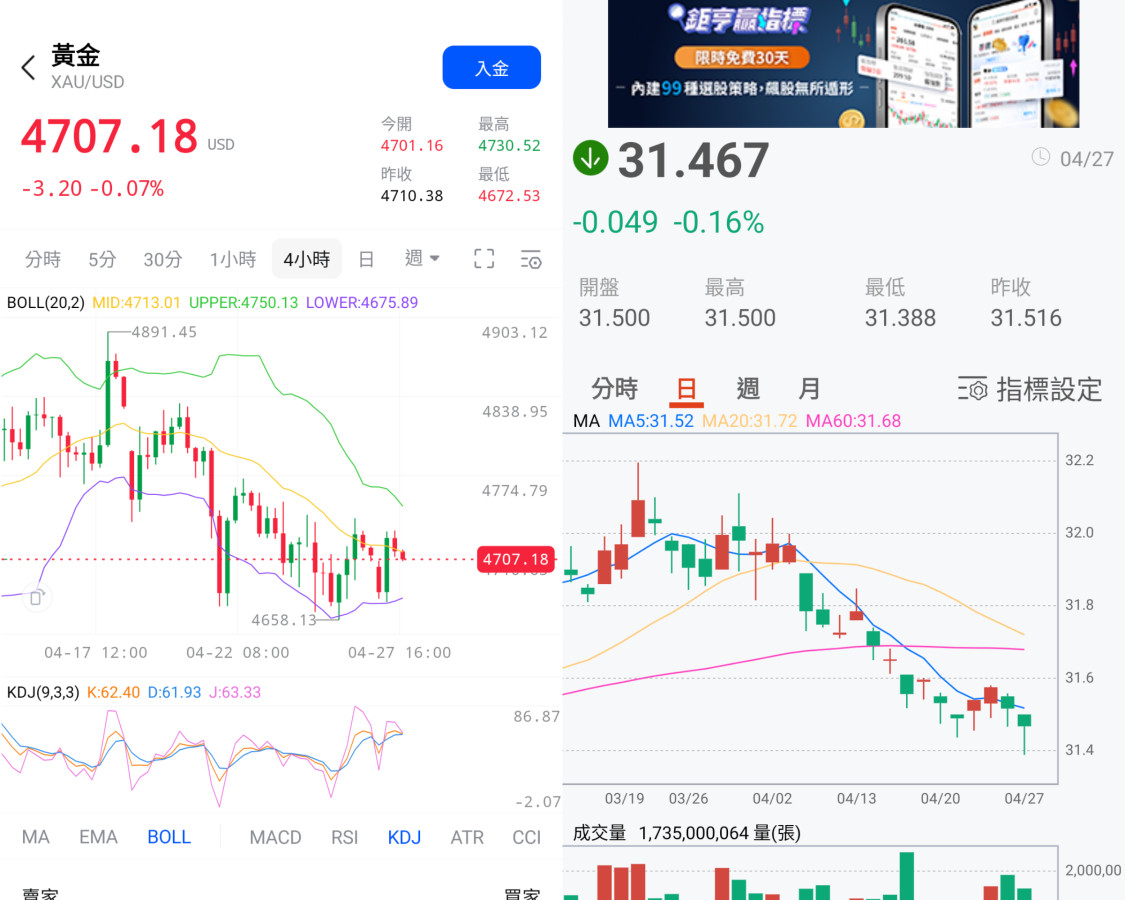 雄大~目前黃金感覺沒啥動力~換個思考模式~趁現在買入~不怕以後漲~
