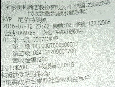 您的匯款資料,臺東縣政府社會處於收到傳真後,將核對匯款資料,確認款項無誤後,會立即開立收據寄送。