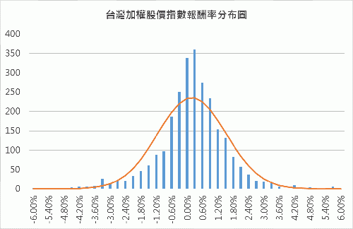 這代表短期投資台股指數買漲的報酬率只比跌的高0.046%