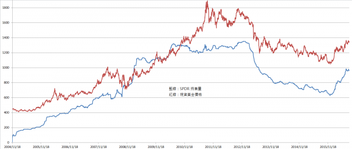ETF持倉:現在1335美元, ETF持倉960頓;20110129金價1336美元, ETF持倉1224頓,現在持倉似乎比以前少,是黃金熱情稍退或者錢在股票中,值得探討。
