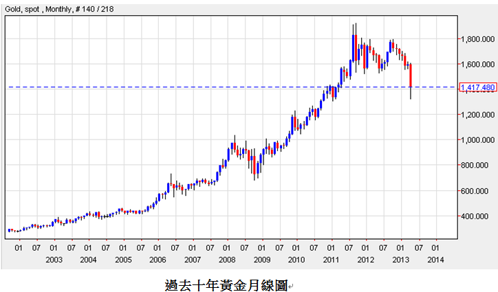上圖為黃金期貨月線圖(點圖可放大觀大)