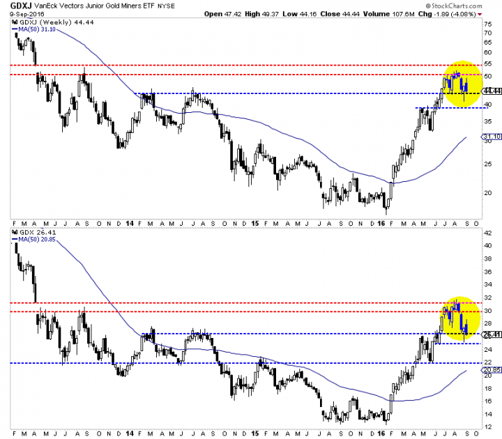 - 雖然我真心認為9月不升息,所以我對9/21以後比較樂觀,但實際情況是,連那些美國投資銀行與其他各家分析機構都猜不到了,我們一般人又何苦執著去猜測?所以,我也做好,萬一升息的準備計畫,因為我目前空手,所以可以邊走邊看,可以嘗試在GDX 25進場15%,跌到22再買20%,跌到20在買30%,反之亦然。