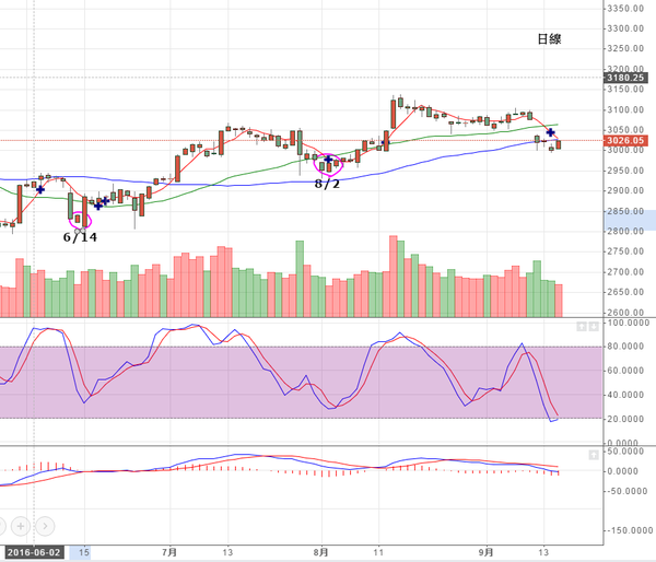 量縮,整理,十一長假前,應該都是如此,你不覺得三天的量價有點像嗎? 先看 3200 -- 3400 -3500 約莫可賣一次,看情況...