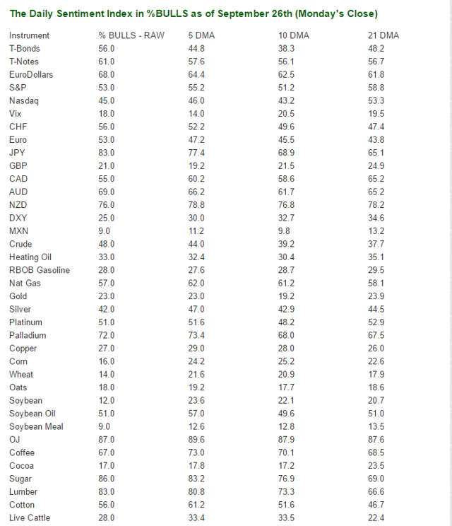 While gold GLD sits just 3% off its 52-week highs, sentiment on the yellow metal has washed out to pessimistic levels. The most recent reading Tuesday on the Daily Sentiment index (DSI) showed only 23% bulls left in gold. This number is down from a reading of 44% just 2 weeks ago. This means that the price of gold lost 21% of its bulls despite only a 1% drop in the gold price. For gold bulls, this could not be better news. While gold is busy consolidating its large advance from earlier this year, over 70% of bulls have thrown in the towel.