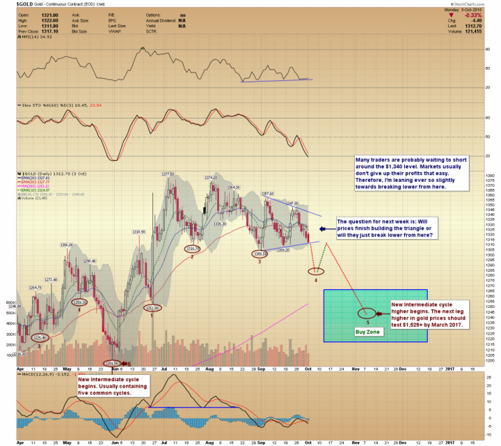 The Japanese Yen has been showing a high correlation to gold. The Yen peaked in October of 2011, just a few weeks after gold, and then began a multiyear decline. In late 2015 the Yen produced a failed cycle (unable to make a lower low], and thus, marked a pivotal turning point. Precious metals have rallied with the Yen through all of 2016 and are now seriously overdue for a correction. For this reason, I continue to look lower in gold.