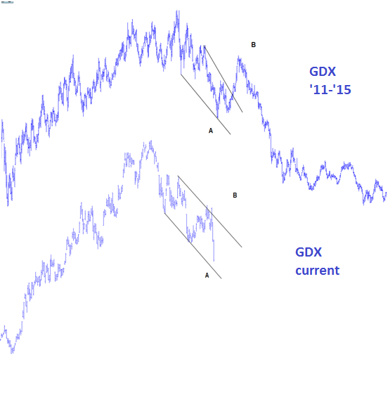 正如我們所指出的,有鑑於黃金持續下跌,黃金股在最近幾週都維持得很好。近期的每日K棒,代表週五的上漲,可能是一個持續反彈的開始。最強的壓力匯集在GDX $ 23.50和$ GDXJ 39 ,這些都是保守的,切合實際的目標。還有一個機會,可以金礦股可以反彈得更遠,就是 GDX $26和$ GDXJ 42.50。