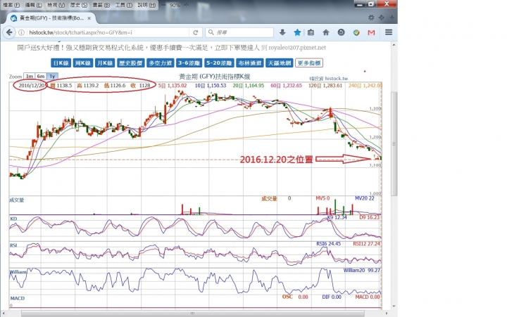 目前黃金價格的月線(與季線)最低點=1126.95美元/盎司。