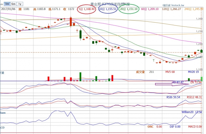在國際黃金市場上價位,既已突破了5日線/10線/20線→代表漲勢形成。
