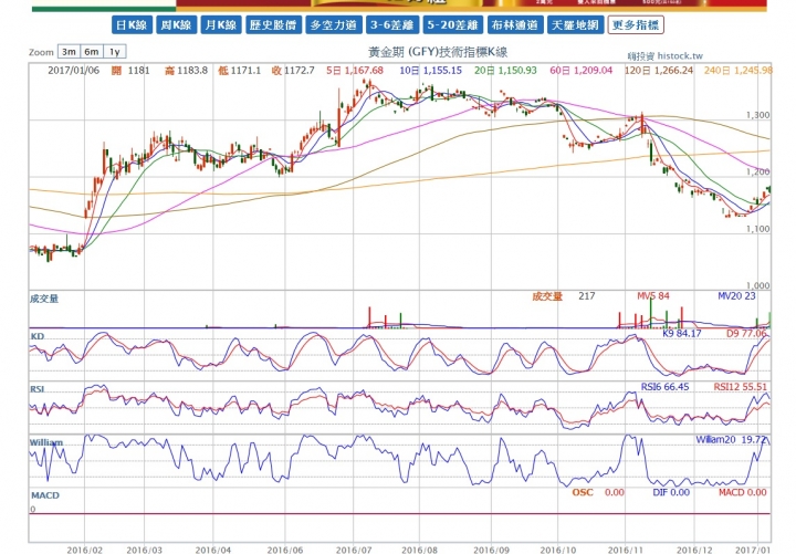 從2016的七月1370高點跌到10月的1250最低點→就反彈波出現昇到1309就沒了。