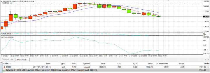 昨日現貨黃金開巿價為1190.43其後再次在亞洲巿場持續走高升至1206.85 突破1200的阻力位置 但在其後卻沒能站穩1200在美國巿場後更一广度加速下跌 再次跌穿1200 最終收巿報1195.22