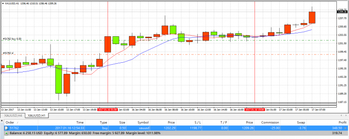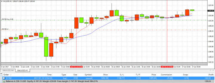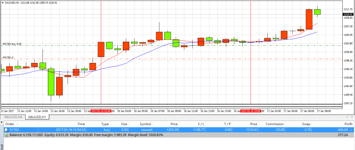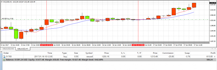 昨日現貨黃金開巿價為1199.33 隨後在亞洲巿埸震蕩上行 曾急速拉升至全日最高点1208.30 之後回復震蘯 其後因馬丁路德金記念日美國-市場休市一天 巿埸最終沒有大波動 收市價報1203.01 昨天我們給出的1204輕倉空單被急速拉升止損亏蝕130美元 先再次說聲非常抱歉 其後我們改變策略在1202-1204位置做多單 現在仍持有中 現盈利2-4個點 追回昨天的損失 再次恭喜有跟上的投資者