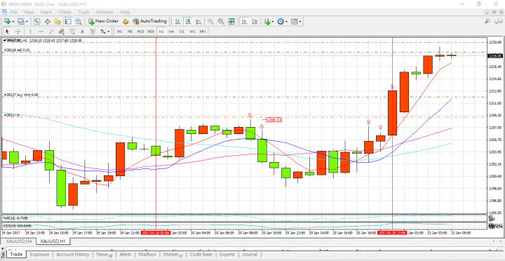 上週現貨黃金開巿價為1204.79 其後先是一次震蕩上去至1209後承壓回落 最低曾見1198.80 其後特朗普的就仼儀式正式開始 隨後一如巿埸所料 特朗普發表講話中 多番暗示美元不在該在的位置 導致投資者的恐慌情緒加劇 美元隨即受到拋受 黃金受到追棒 直接由谷底反彈至1215.16 最終收巿價報1212.90 一如預測在1207-1208做空 止損放1210 絲毫不差地完全命中 而且止盈更是1200-1202理所當然也是成功止盈的 獲利800美 恭喜有跟上的投資者 能好好過肥年 讓盈利成為習慣